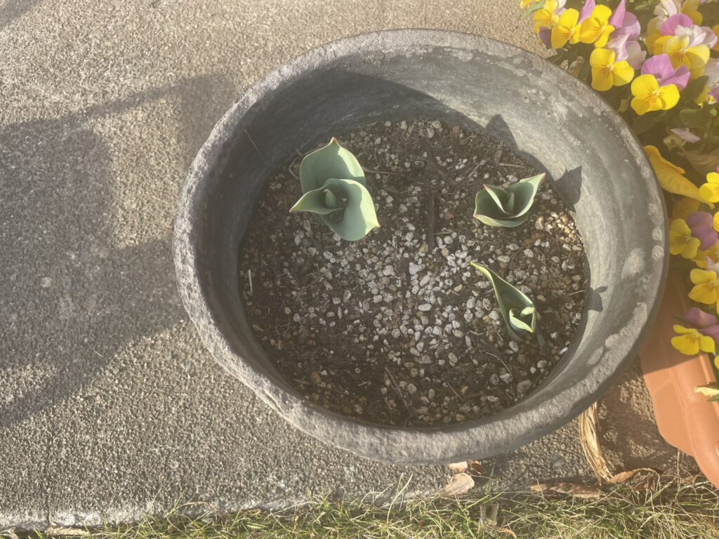 少しずつ大きくなってきたチューリップ🌷の芽も、春の光を浴びてすくすくと成長中です!